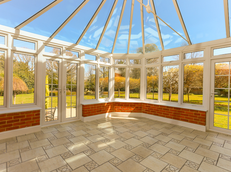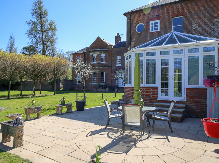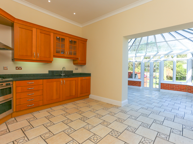 - Large open plan kitchen with connecting panoramic dining conservatory, recently replaced to a high standard with French doors and steps onto the patio and into the garden