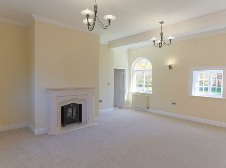 - Well-proportioned large bright dual aspect living room with impressive stone fireplace