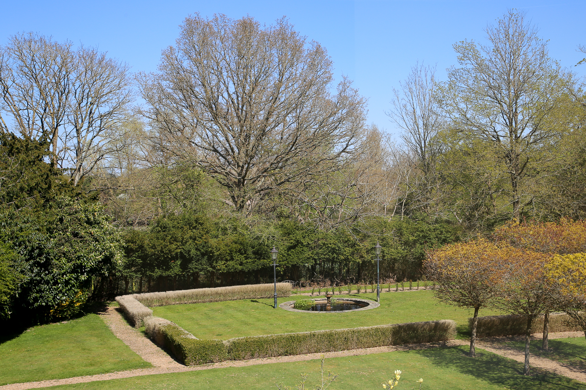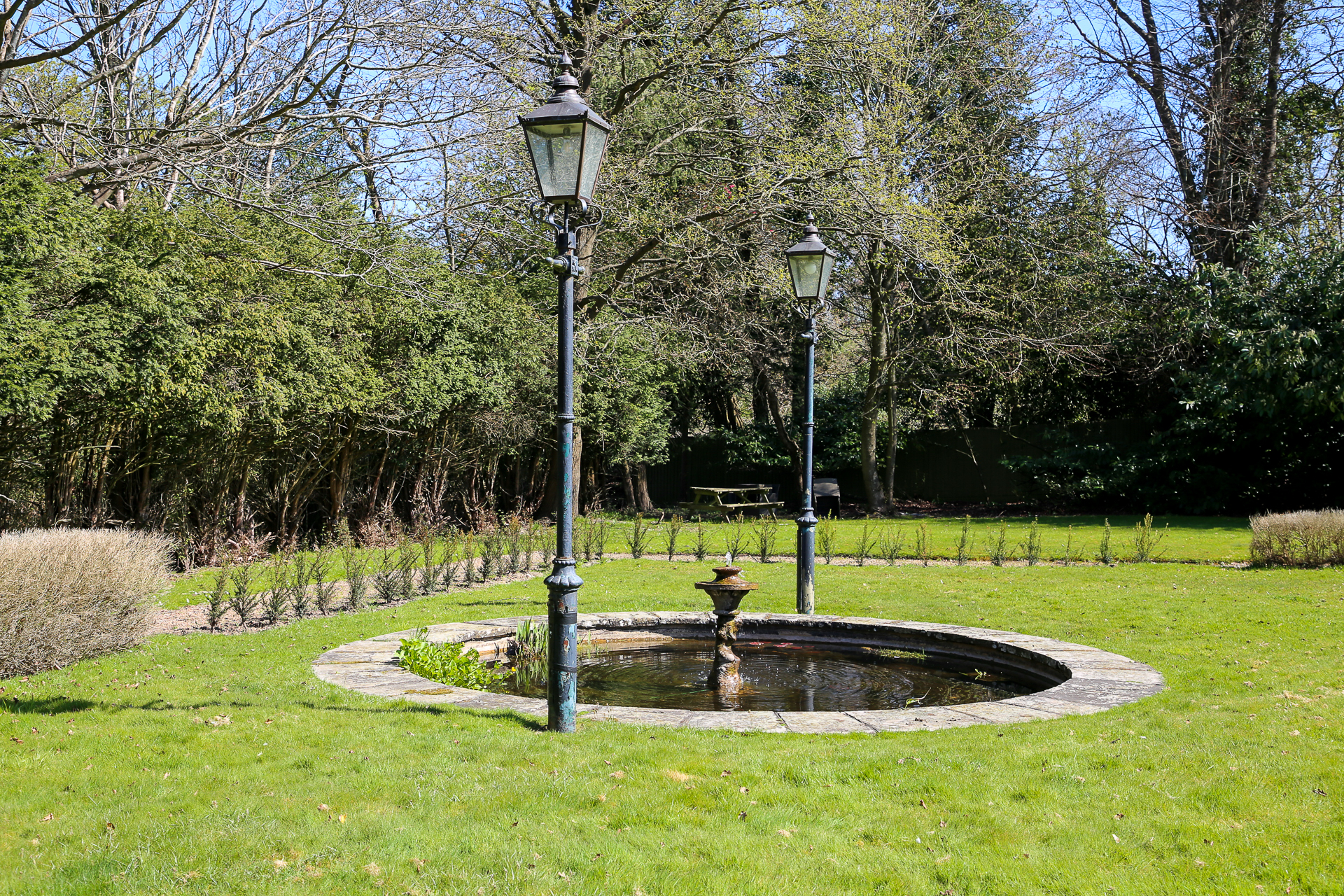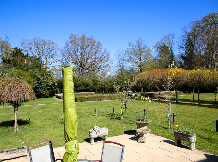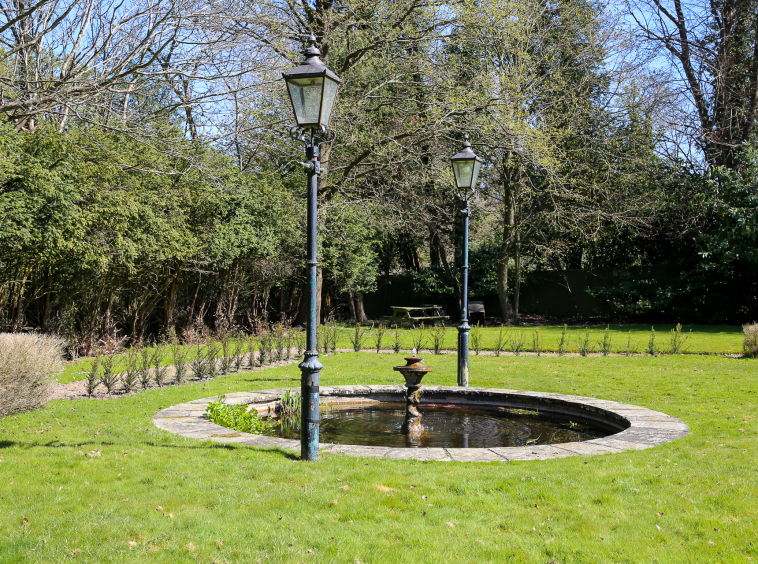 - Small manageable private garden and good-sized patio overlooking the expansive 2.4-acre mature communal garden and pond with decorative lighting